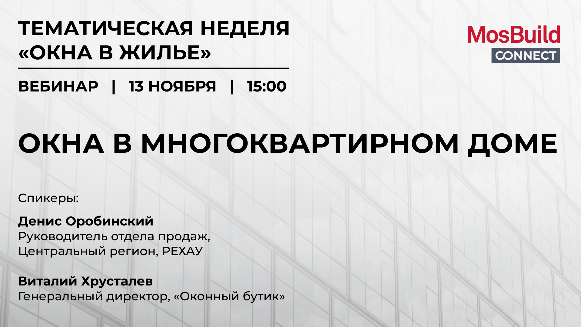 Нобрьская тематическая неделя посвящена окнам в жилье. Поговорим на вебинаре об окнах в многоквартирных домах.