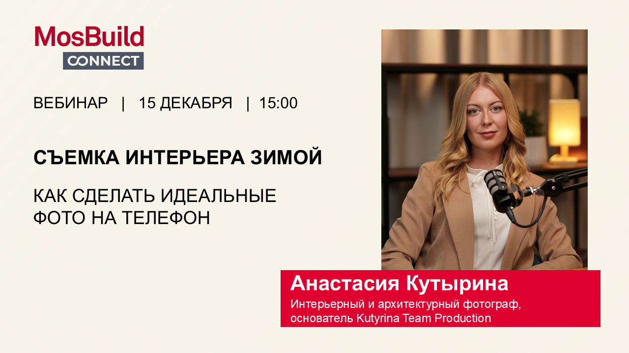 Интерьерный и архитектурный фотограф, основатель Kutyrina Team Production Анастасия Кутырина расскажет, в чем секрет успешной мобильной фотосъемки, как снимать новогодний декор и какие приемы использовать для создания атмосферных фотографий